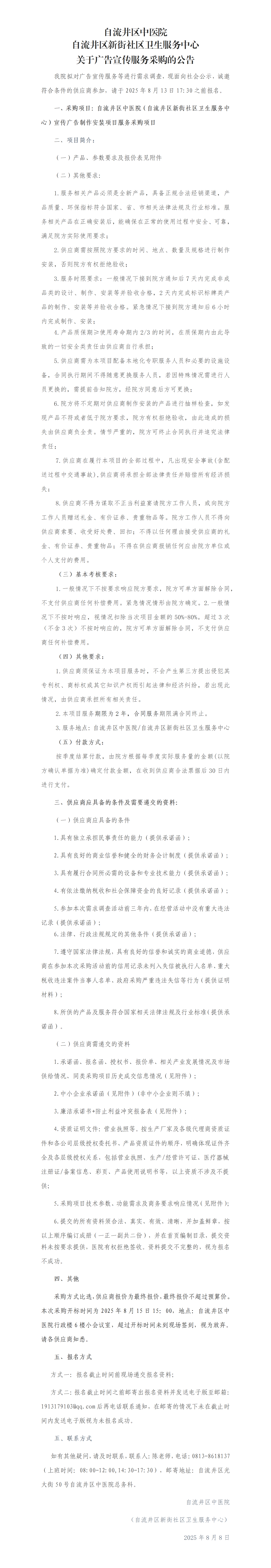 自流井区中医院(自流井区新街社区卫生服务中心)关于广告宣传服务采购的公告