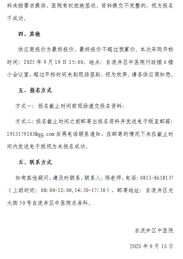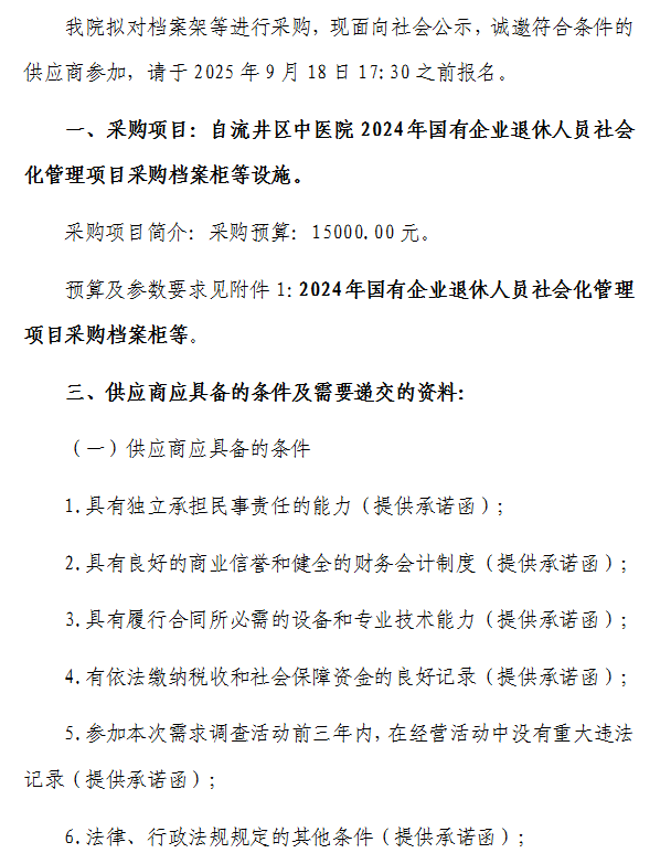 自流井区中医院关于档案架等设施进行采购的公告