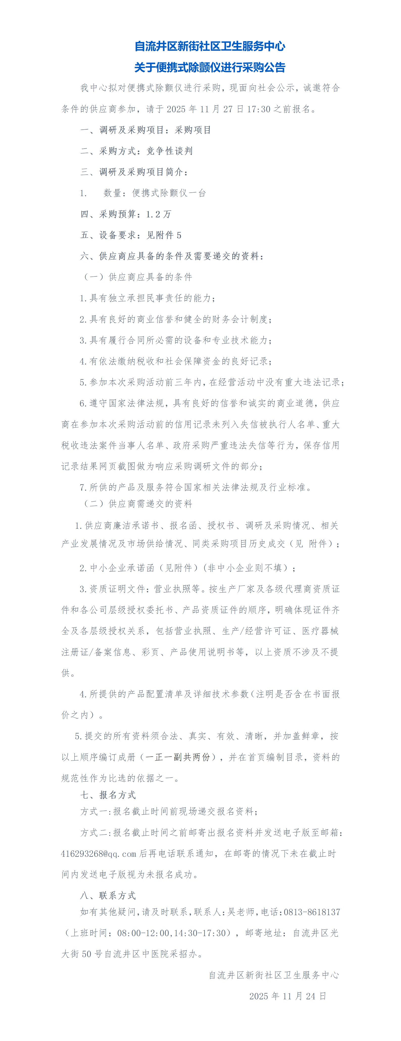 自流井区新街社区卫生服务中心关于便携式除颤仪进行采购公告